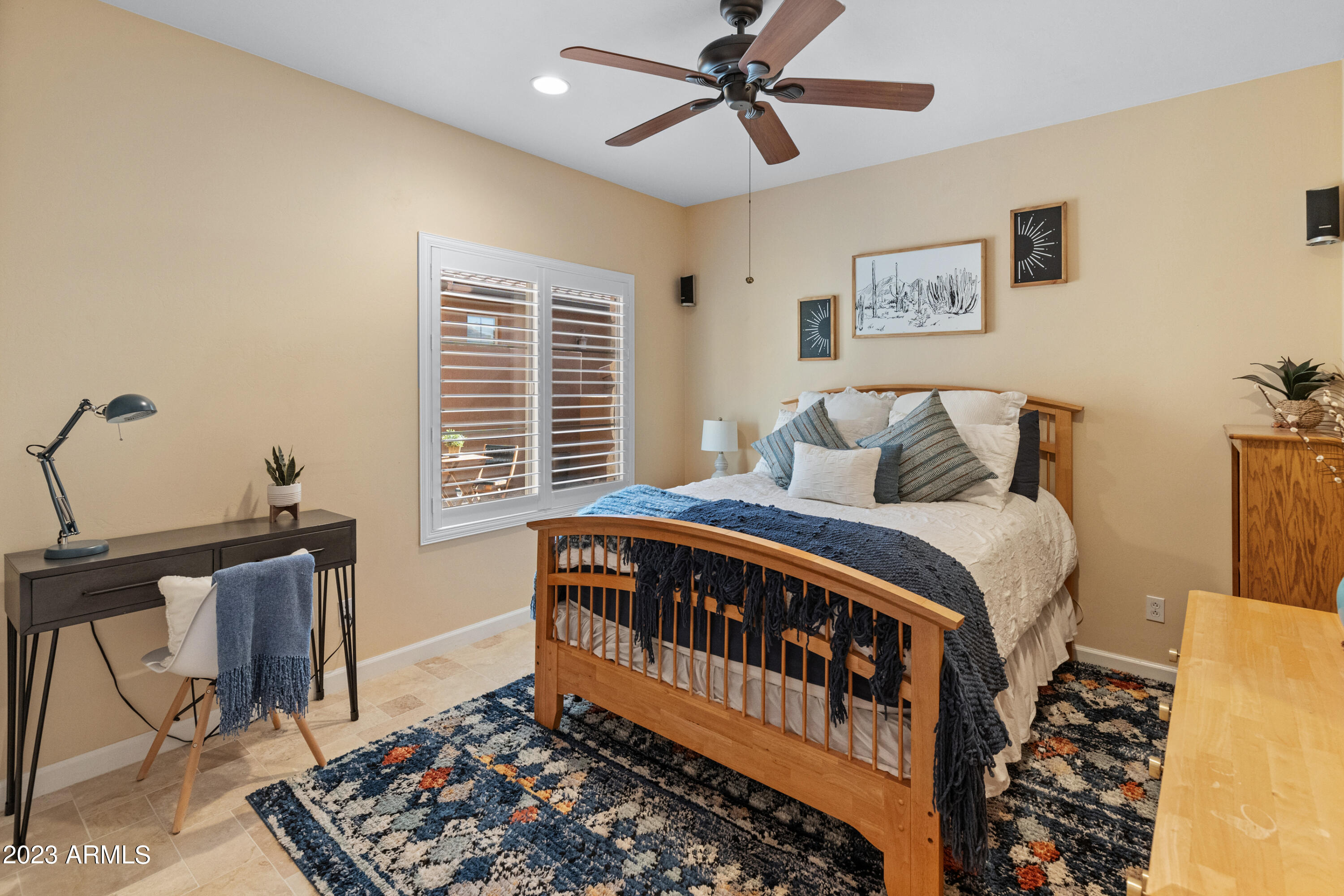 Welcome to this stunning luxury residence nestled in the quiet, gated community of Soltice at Sevano. This meticulously maintained home by Cachet offers scenic views and a perfect blend of modern elegance and Arizona charm. Enjoy this 3BR plus loft floorplan w/ one bedroom downstairs for guests. The expansive Owner's suite + mini master are both upstairs for secluded privacy. Enjoy a warm kitchen w/ newer cabinets, upgraded appliances including a Wolfe gas cooktop and Bosch dishwasher, plenty of storage, perfect to entertain or a quiet dinner at home. The Versailles patterned travertine floors and plantation shutters are sure to impress! Your great room offers a fireplace and dry bar too! Outside are multiple lounging spaces, perfect to enjoy our AZ winters! This home provides a peaceful retreat while being conveniently close to AJ's, a beautiful park, golf courses and amazing hiking trails too.