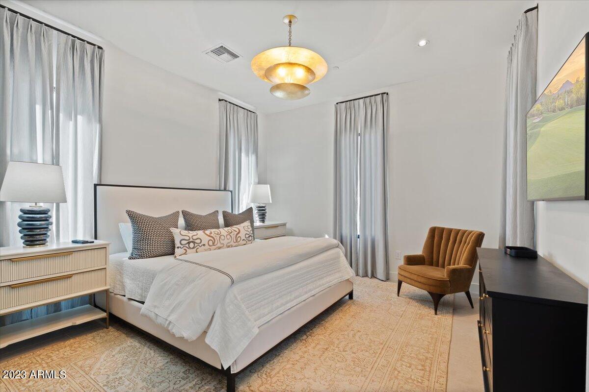 Beautifully appointed, barely-lived-in Camelot Villa overlooking Desert Mountain's Seven Golf Course with views of Black Mountain down the 12th fairway. This single level home has 3 ensuite bedrooms, 3.5 bathrooms, a tandem 3-car garage, and striking interior finishes including stunning light fixtures and custom draperies. The bright and open great room, anchored by a sleek modern kitchen with top of the line appliances and a generous waterfall island, overlooks the sunny, south-facing backyard through 10' tall sliding glass pocket doors. Days away from completion, the backyard includes a brand new pool, spa, firepit, and built-in BBQ. A FULL GOLF MEMBERSHIP is available to the buyer upon approval. Professionally curated furnishings and accessories are available by separate bill of sale.